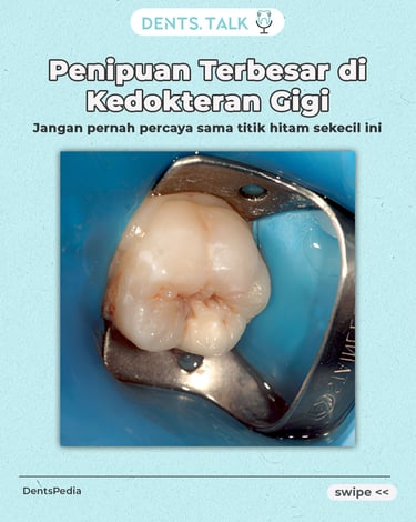 Kelihatannya cuma titik hitam kecil, nggak ada keluhan linu, sonde pun nggak nyangkut. Tapi pas iseng kita buka... isinya sudah 'kopong' sampai mau kena pulpa.