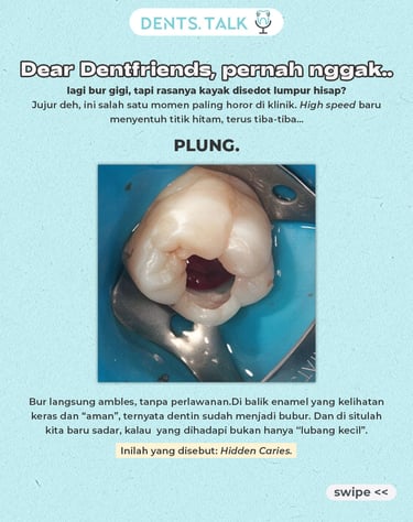 Inilah sisi 'menipu' dari Hidden Caries. Enamel yang keras sering kali menutupi proses demineralisasi yang sudah luas di dalam. Sebagai praktisi, tantangan kita bukan hanya pada teknis pengerjaan, tapi pada ketepatan diagnosis dan komunikasi ke pasien agar tidak terjadi kesalahpahaman di kemudian hari.